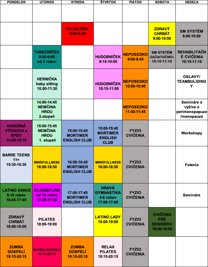 Veľká sála – kliknite na rozvrh pre prechod na rezervačný systém