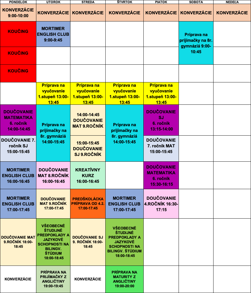 Učebňa – kliknite na rozvrh pre prechod na rezervačný systém